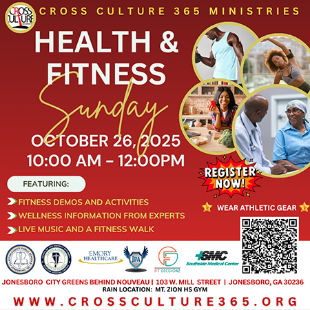 |  | | Community wellness event On Oct. 26, OGCA will collaborate with Emory Healthcare to support Cross Culture 365’s upcoming Health and Fitness event in Clayton County. This community-centered event will feature fitness demonstrations, wellness information and on-site services from the Emory Healthcare Mobile Prostate Screening Bus. Registration is free and open to the public. Click here to register. We hope to see you there! |